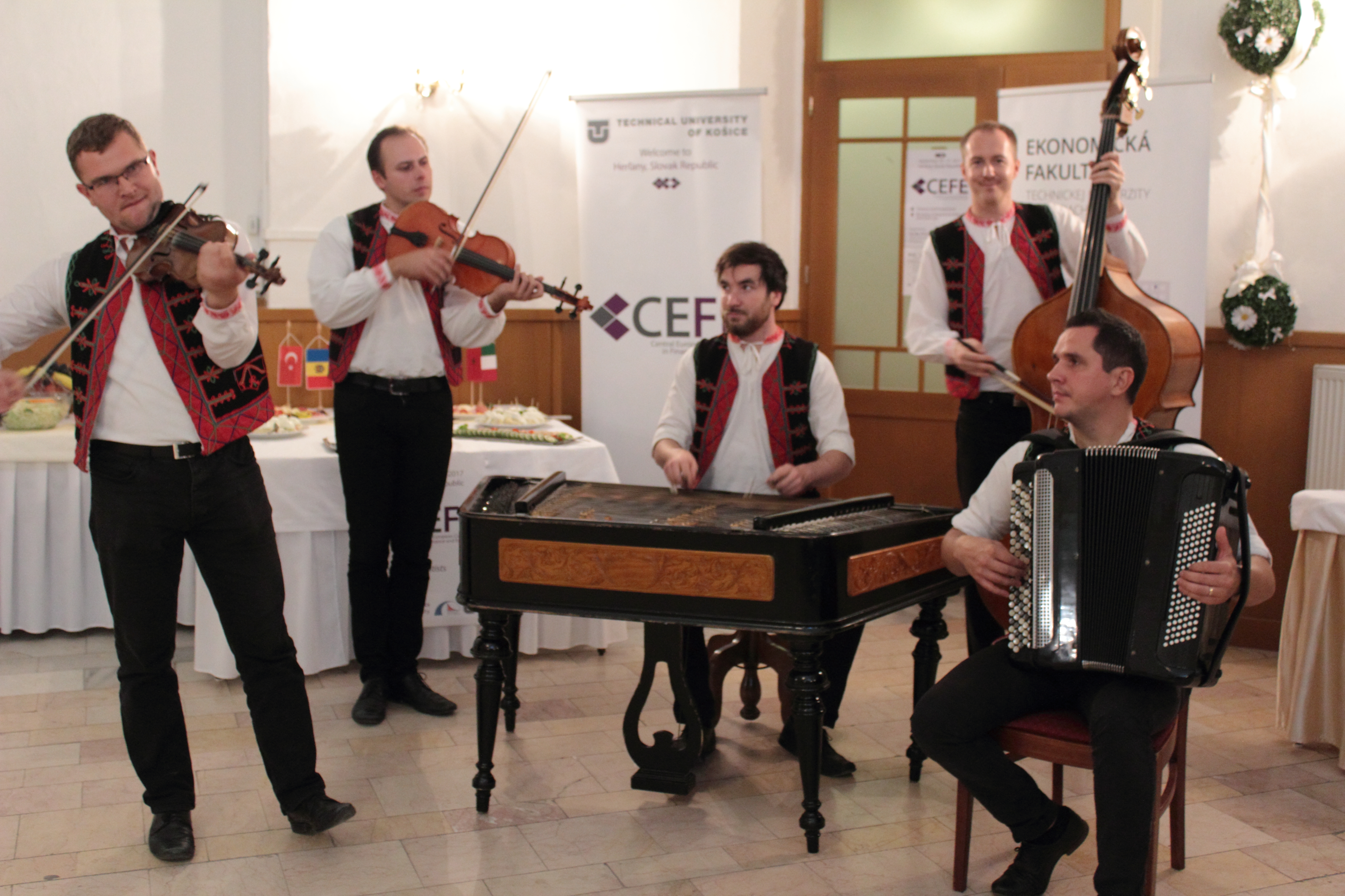 An extraordinary event during the conference was the social evening that was celebrated by the 25th anniversary of the Faculty of Economics occasion. The conference evening was an unforgettable experience thanks to the food, folk music and the performance of the Raslavičan folk group from Raslavice, which has drawn all the participants of the conference into dancing. The "cherry on the cake" was the Herlany´s geyser, which eruption at 21:45 encouraged all the participants of the conference to leave the hall and enjoy this unique natural phenomenon embedded by a common photograph.